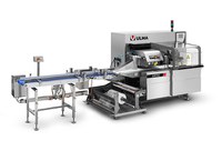Enveloppeuse Flow Pack horizontale (HFFS) qui réalise 3 soudures totalement hermétiques et obtient un sachet "coussin" pour le conditionnement, sous Atmosphère Modifiée (MAP), d'aliments frais. Niveau de prestations le plus élevé.