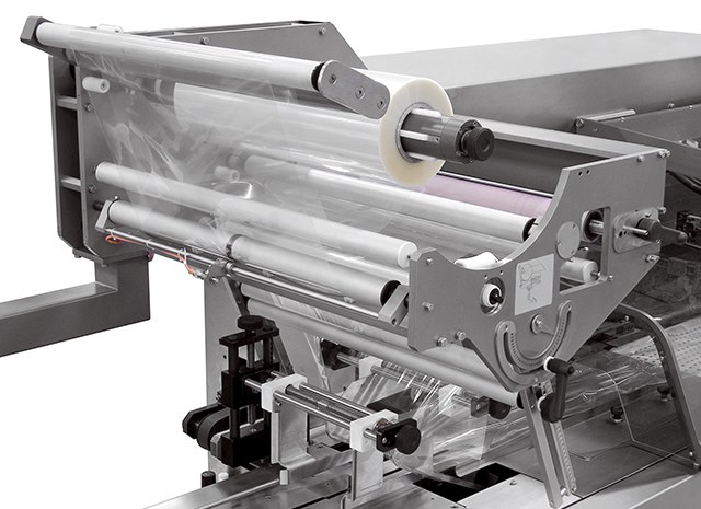 - Porte-bobines avec système de fixation pneumatique de la bobine et déroulement motorisé de film.