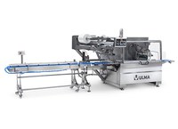 Enveloppeuse Flow Pack horizontale (HFFS) qui réalise 3 soudures totalement hermétiques et obtient un sachet "coussin" pour le conditionnement, sous Atmosphère Modifiée (MAP), d'aliments frais. Niveau de prestations élevé.