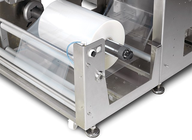 - Porte-bobines à introduction frontale avec système de fixation pneumatique pour faciliter le chargement des bobines de film.