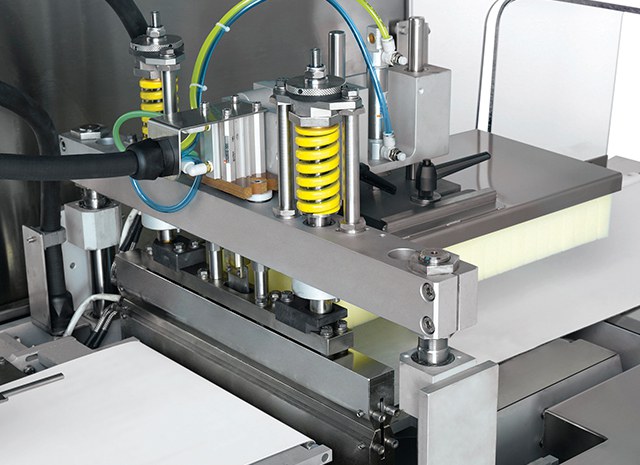 - Tête de mâchoires à Longue Soudure contrôlée par deux moteurs indépendants qui donne une grande flexibilité à la machine en optimisant le cycle des mâchoires et qui permet d' obtenir des soudures hermétiques dans les applications sous Atmosphère Modifiée (MAP), sans renoncer pour autant à des cadences élevées.