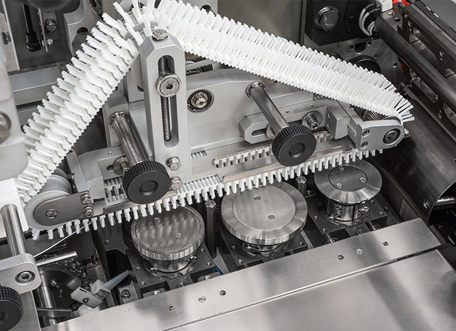 - Réglage de la longueur du sachet en fonction de la longueur du produit grâce à un système de cellule photoélectrique sur el convoyeur d' alimentation.