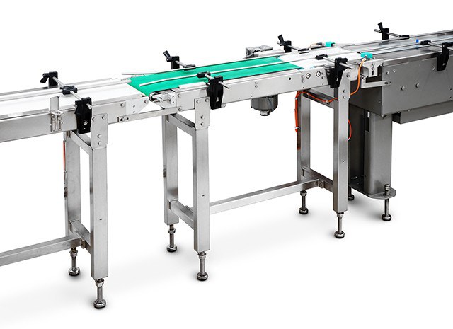 - Convoyeur d' alimentation spécial avec un tapis de transport et deux taquets d' entraînement.