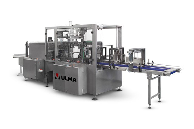 Fardeleuse automatique en ligne ULMA modèle EPB, à conception modulaire, conçue pour emballer, sous film rétractable à plat, différents types de lots de produits (1 seule hauteur).