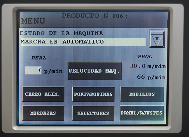 Le système de contrôle par PC industriel dispose d' un système de communication agile et simple qui, grâce à un écran tactile, nous informe en permanence sur l' état de la machine et des paramètres de contrôle.