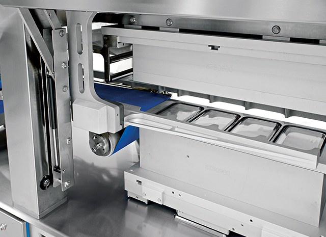 Cette machine est conçue pour être intégrée sur des lignes de productions élevées ou pour des procédés qui requièrent un contrôle précis du mouvement pendant le transport des barquettes. Le scellage peut se faire sur 1 file (monoligne) ou sur 2 files (double ligne), cela dépend du format à conditionner.