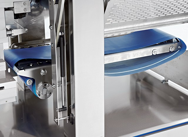 - Entrée des barquettes et positionnement: tapis actionné par moteur-tambour.
