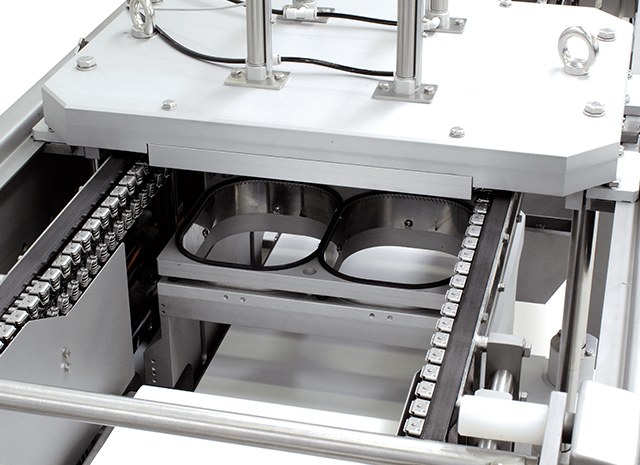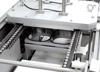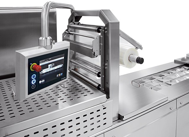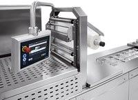 Thermoformeuse hygiénique pour films souples ou rigides avec possibilité de conditionnement sous Atmosphère Modifiée (MAP) et sous Vide. Niveau de prestations moyen/élevé.
