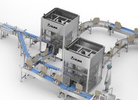 Ligne de conditionnement pour sucreries et produits de confiseries avec emballage et mise en étui automatique.