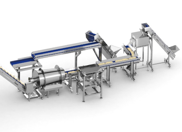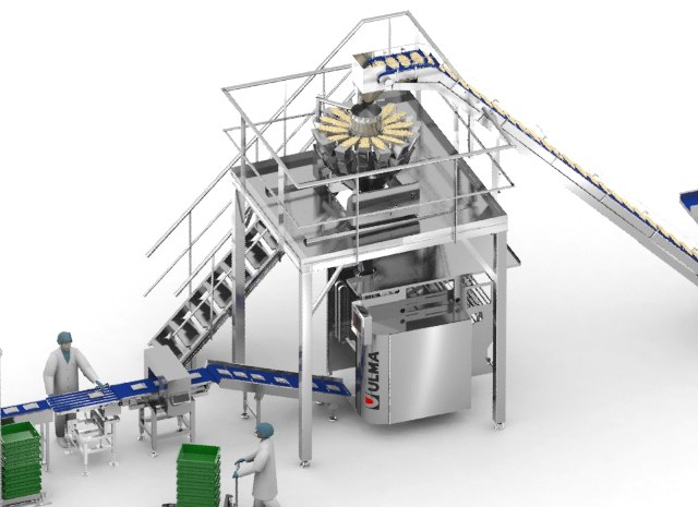 Le produit est transféré jusqu' à la peseuse multi-têtes qui réalise les quantités nécessaires pour chaque sachet, transférant le produit à l' ensacheuse verticale.
