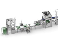 L' installation dispose d' un dépileur automatique de caisses vides pour alimenter la cellule de mise en caisse robotisée.