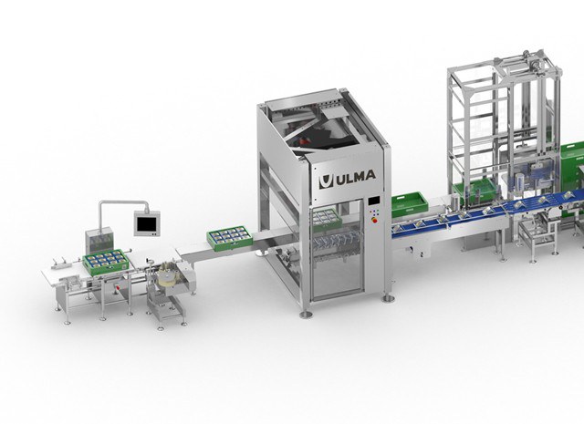 La ligne dispose d' un dépileur automatique de caisses vides pour alimenter la cellule de mise en caisse robotisée.