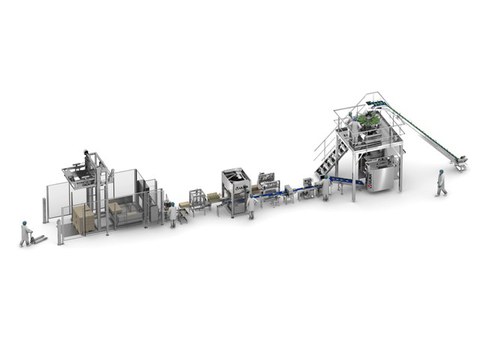 Solutions complètes entièrement automatisées pour les fruits et légumes, allant de la manutention et du chargement des produits, à l'emballage final et à la palettisation, en passant par le conditionnement.