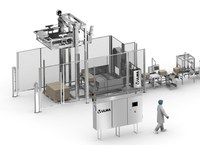 La ligne se compose d' une formeuse de caisses, d' une cellule d' encaissage robotisée et d' une fermeuse. Tout cela est parfaitement intégré dans la ligne pour que le processus soit entièrement automatisé.